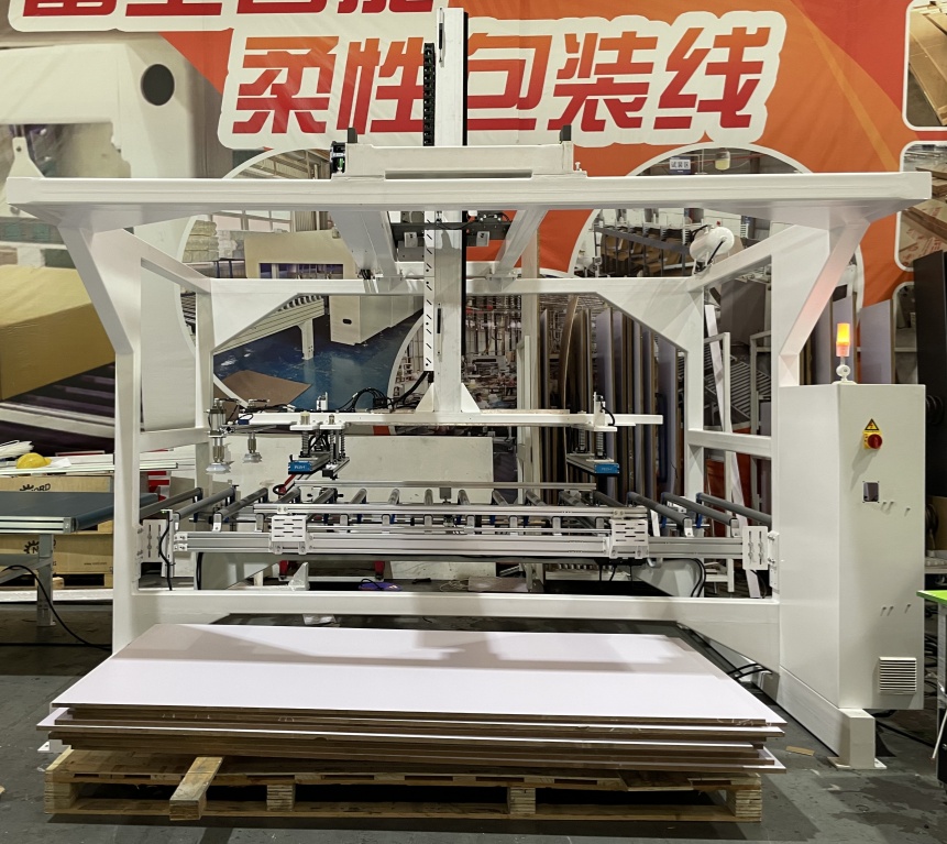 3. Phát hiện độ hấp dẫn: Một cảm biến căng thẳng phát hiện tải. Sau khi xác nhận rằng chỉ có một lớp bảng điều khiển được lấy, bốn cốc hút hình đĩa nhỏ gắn vào một đầu của bảng điều khiển